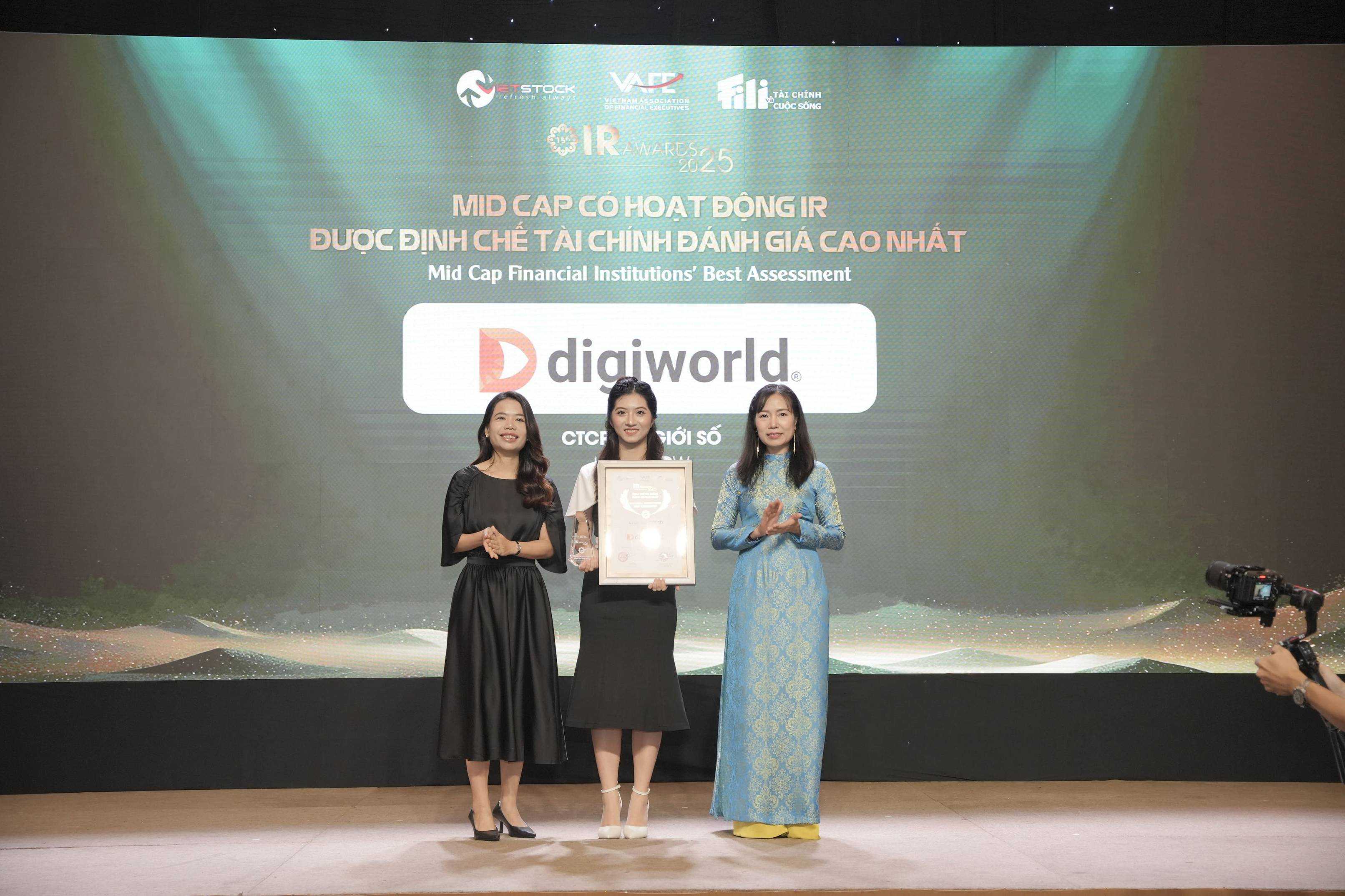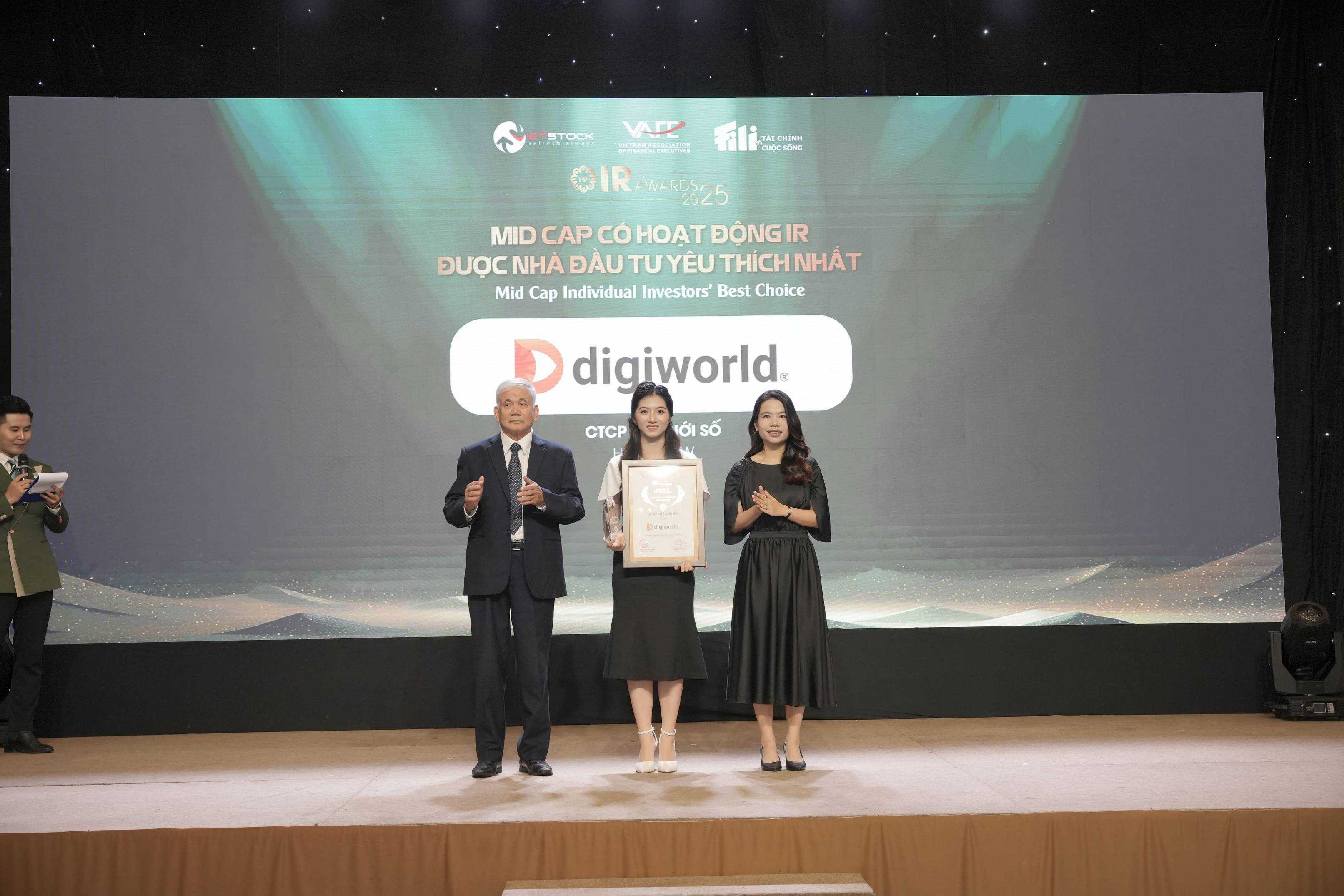 Nhờ những nỗ lực bền bỉ trong suốt thời gian qua, Digiworld đã xây dựng được mối quan hệ tin cậy, bền vững với cộng đồng đầu tư, đồng thời củng cố uy tín và hình ảnh của doanh nghiệp trên thị trường chứng khoán Việt Nam. Thành công tại IR Awards 2025 không chỉ là sự ghi nhận cho hành trình đó, mà còn khẳng định vai trò tiên phong của Digiworld trong việc nâng cao chuẩn mực quản trị và phát triển bền vững. Digiworld xin gửi lời tri ân sâu sắc đến các cổ đông, nhà đầu tư và đối tác đã luôn tin tưởng, đồng hành, đồng thời cam kết tiếp tục hoàn thiện hệ thống quản trị, nâng cao chất lượng công bố thông tin và gia tăng giá trị dài hạn cho cổ đông - góp phần xây dựng một thị trường chứng khoán Việt Nam chuyên nghiệp, minh bạch và phát triển bền vững.